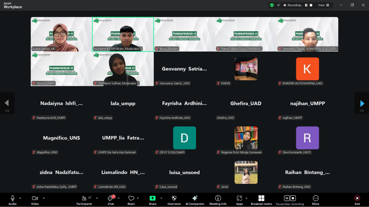 Webinar yang diikuti puluhan mahasiswa dari berbagai perguruan tinggi ini berlangsung interaktif. Antusiasme peserta terlihat dari aktifnya diskusi dan sesi tanya jawab yang menggali lebih dalam tantangan serta peluang di dunia kewirausahaan farmasi.